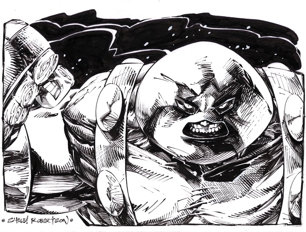 JUGGERNAUT Original Art measuring 12" x 9", (Horizontal). Fully Inked Illustration on Strathmore Bristol board drawn and signed by the artist Shelby Robertson. All artwork and prints are shipped boxed, and protected. *NOT rolled/NOT tube packed*. Includes USPS delivery tracking, ships only to verified PayPal address, non-returnable, non-refundable. One of a kind item.
